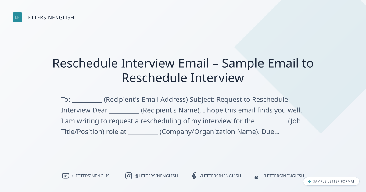 Reschedule Interview Email – Sample Email Requesting Interview Rescheduling