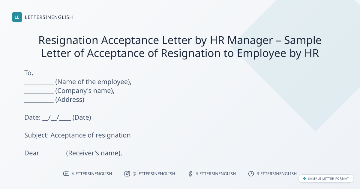 Resignation Acceptance Letter by HR Manager – Sample Letter of Acceptance of Resignation to Employee by HR