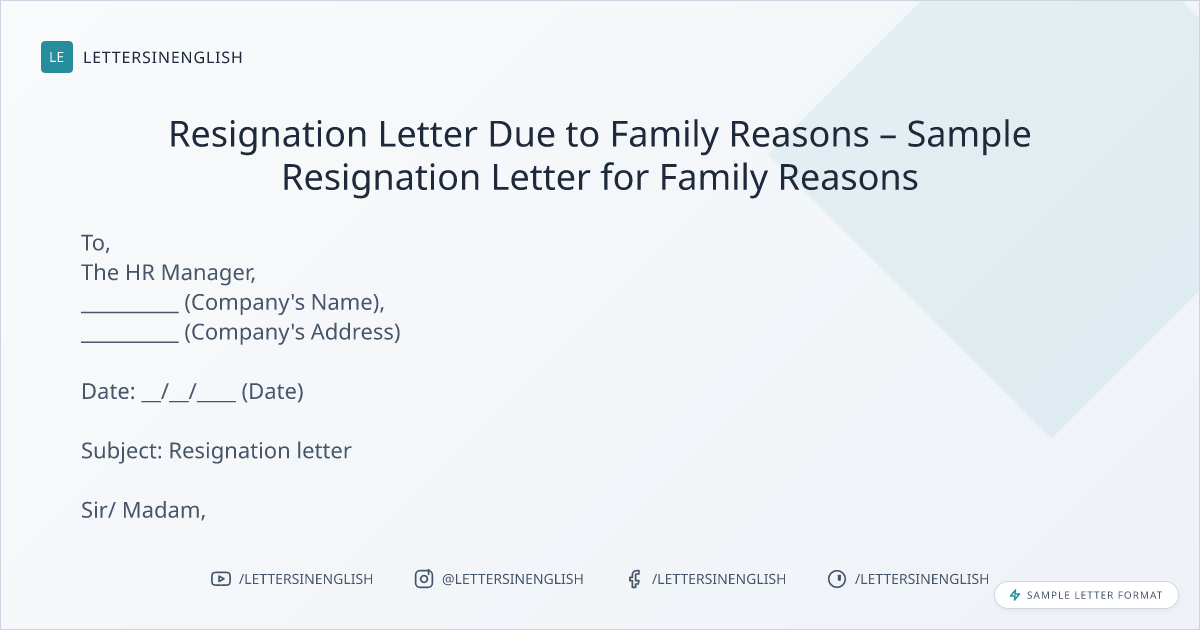 Resignation Letter Due to Family Reasons – Sample Resignation Letter for Family Reasons