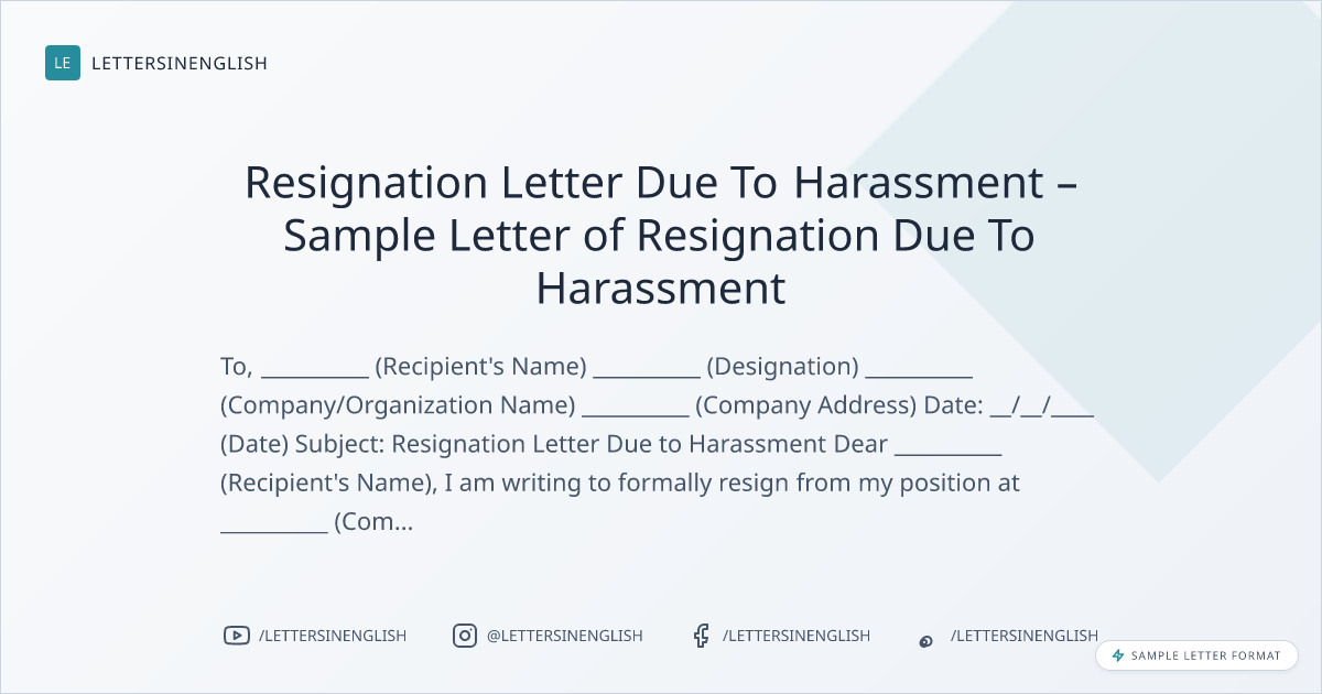 Resignation Letter Due To Harassment – Sample Resignation Letter Because of Workplace Harassment