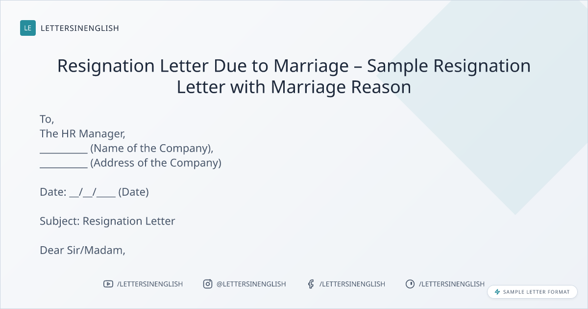 Resignation Letter Due to Marriage – Sample Resignation Letter with Marriage Reason