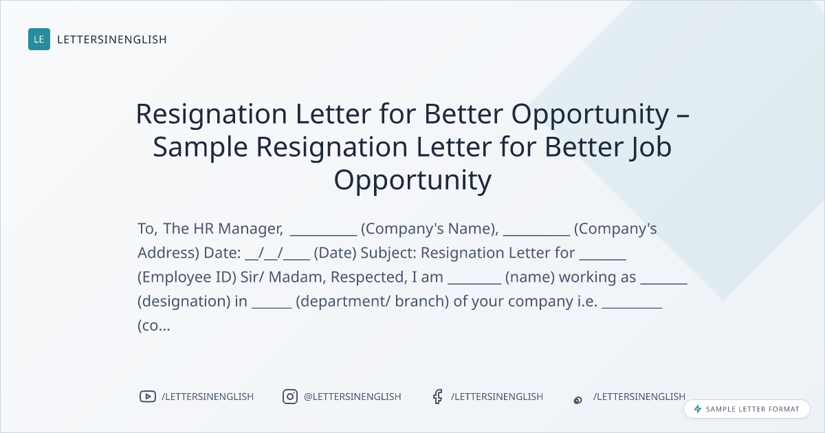 Resignation Letter for Better Opportunity – Sample Resignation Letter for Better Job Opportunity