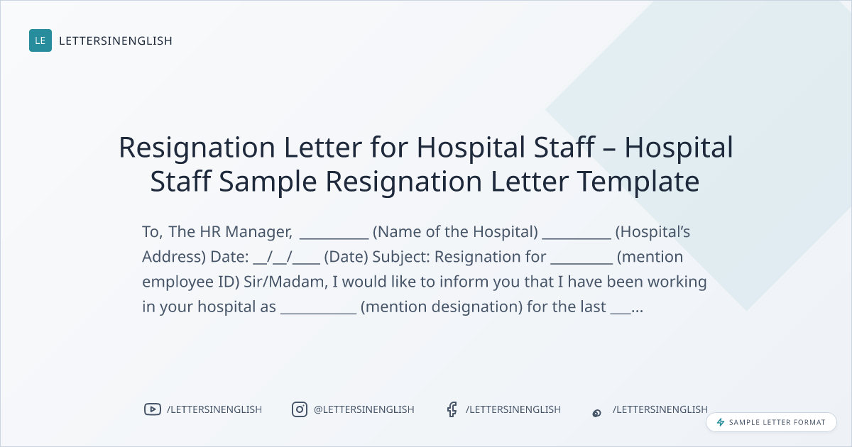 Resignation Letter for Hospital Staff – Hospital Staff Sample Resignation Letter Template