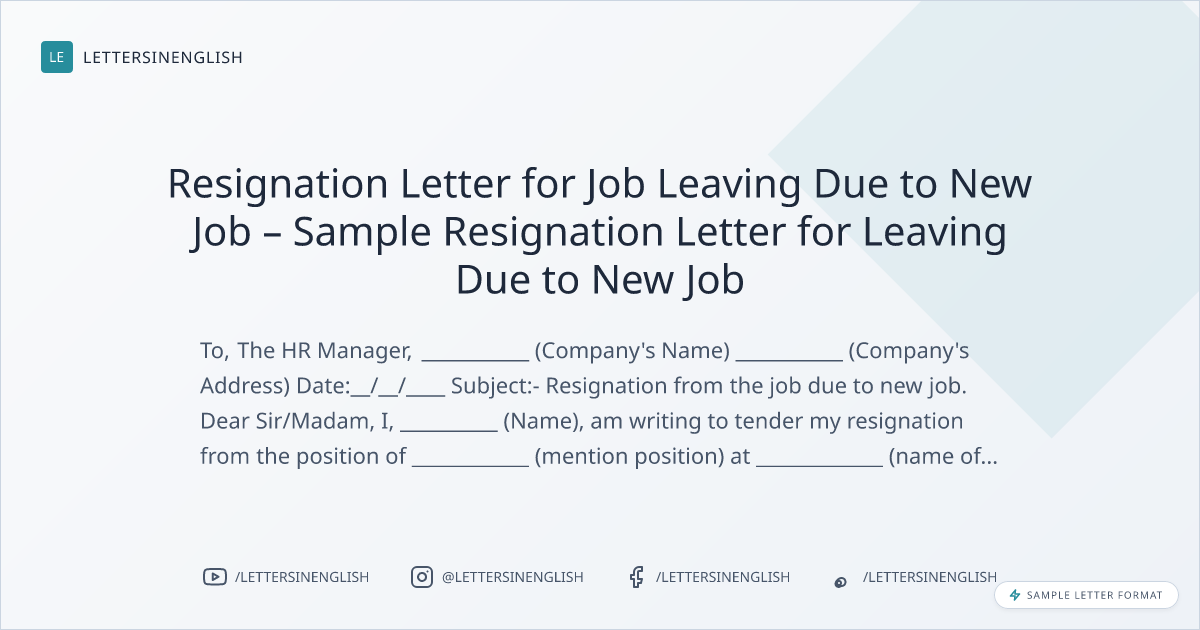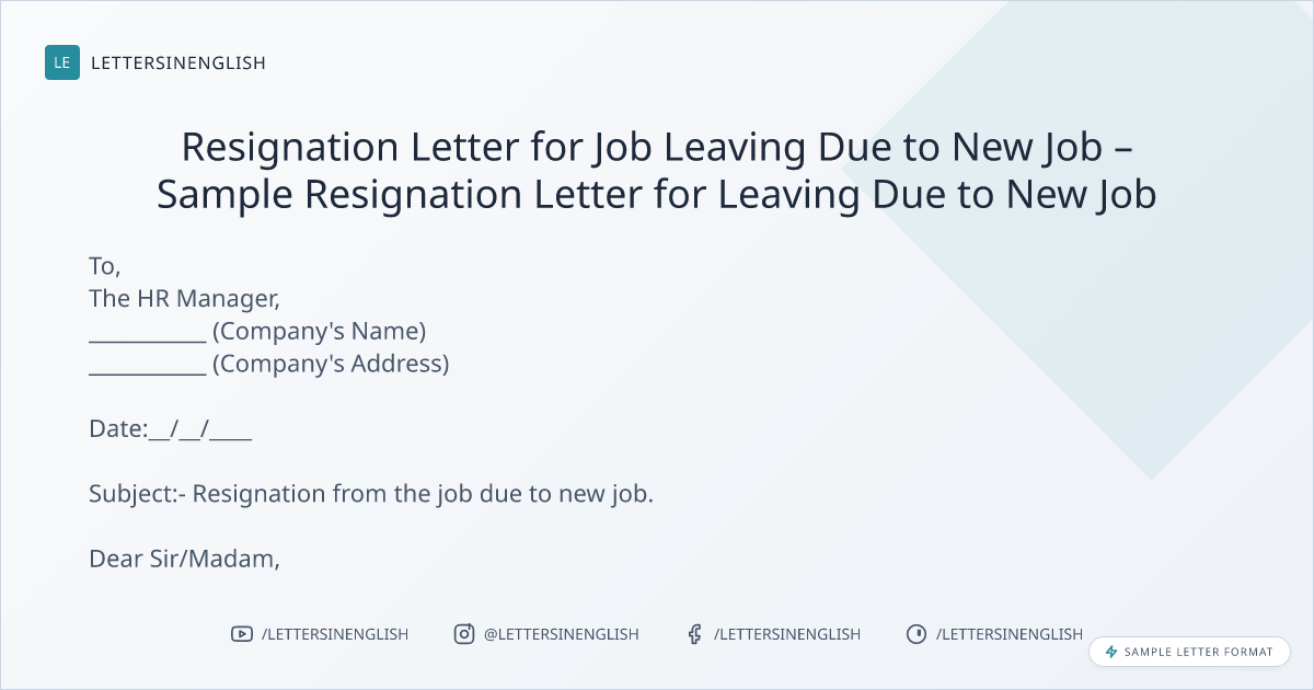Resignation Letter for Job Leaving Due to New Job – Sample Resignation Letter for Leaving Due to New Job