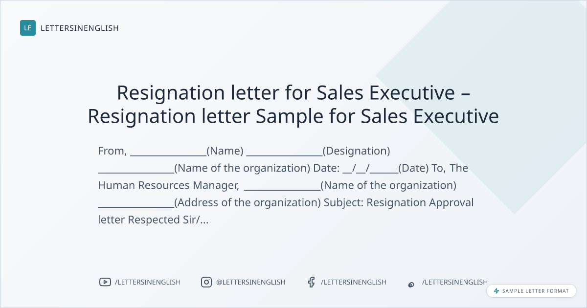 Resignation letter for Sales Executive – Resignation letter Sample for Sales Executive