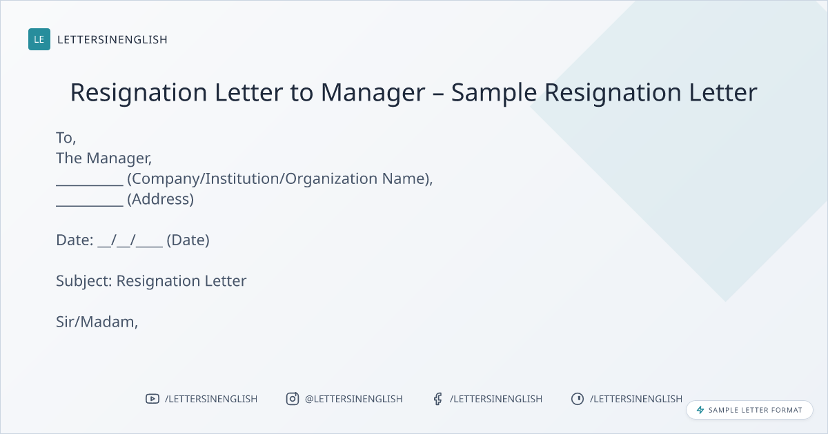 Resignation Letter to Manager – Sample Resignation Letter