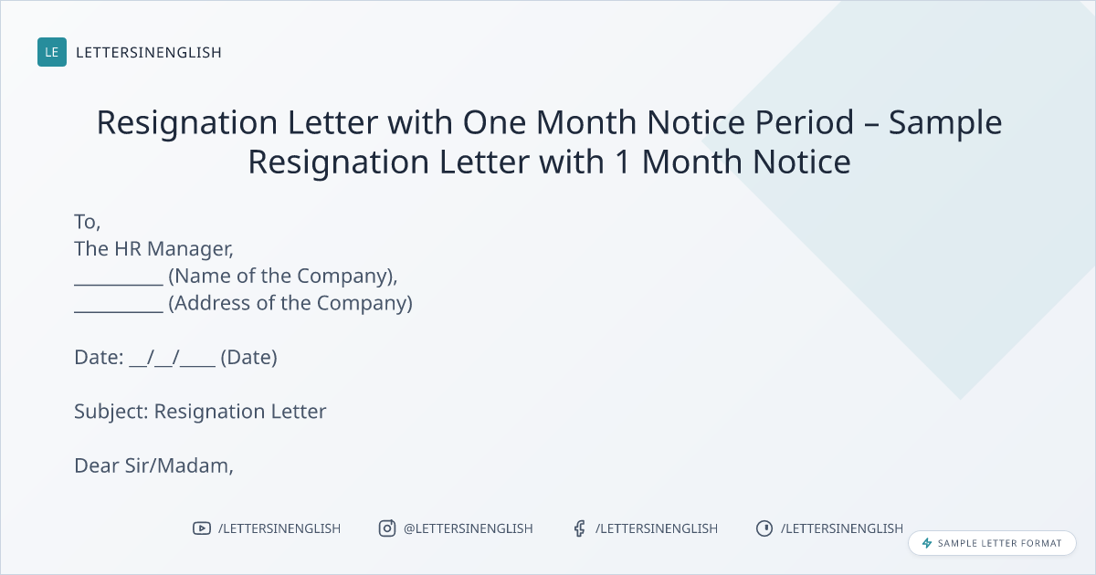 Resignation Letter with One Month Notice Period – Sample Resignation Letter with 1 Month Notice