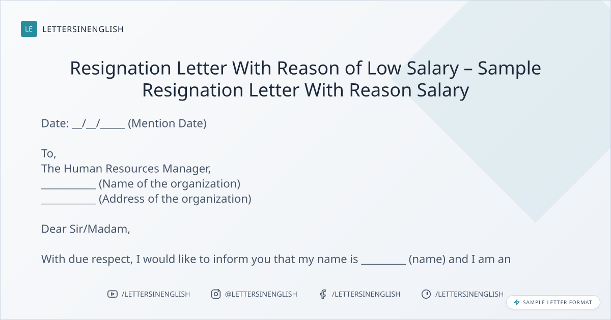 Resignation Letter With Reason of Low Salary – Sample Resignation Letter With Reason Salary