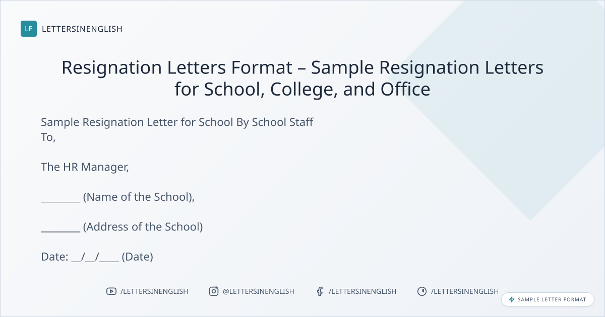 Resignation Letters Format – Sample Resignation Letters for School, College, and Office