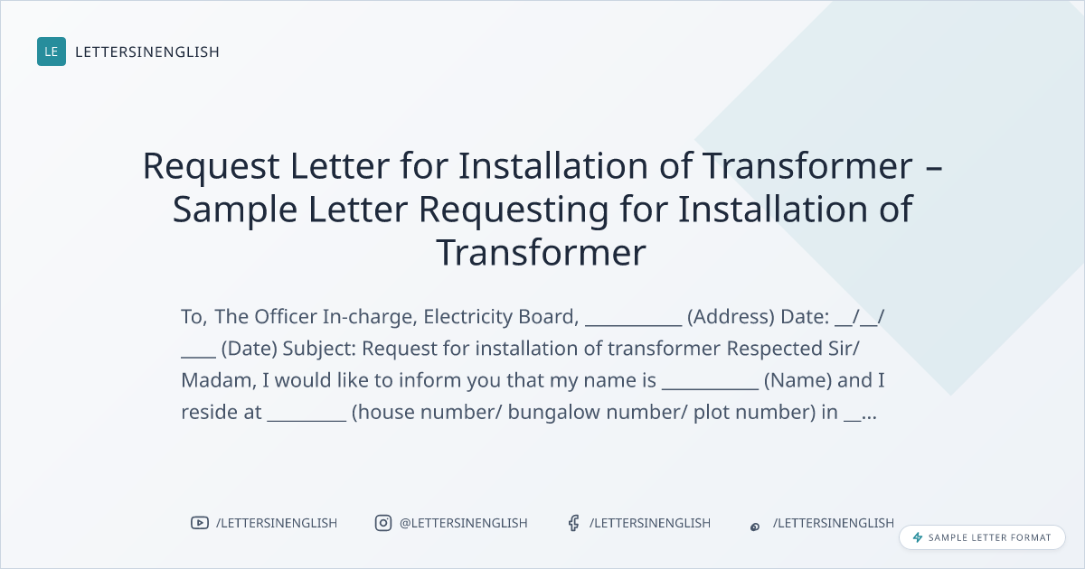 Request Letter for Installation of Transformer – Sample Letter Requesting for Installation of Transformer