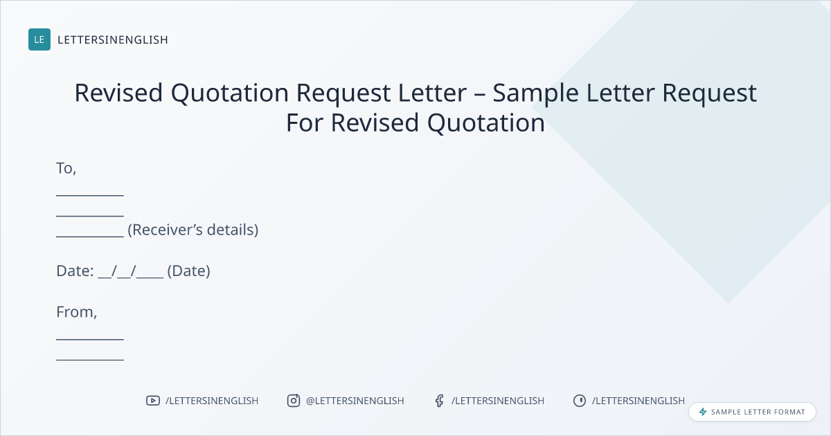 Revised Quotation Request Letter – Sample Letter Request For Revised Quotation