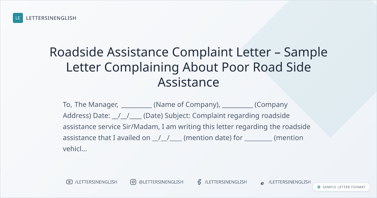 Sample Letter About Poor Road Side Assistance