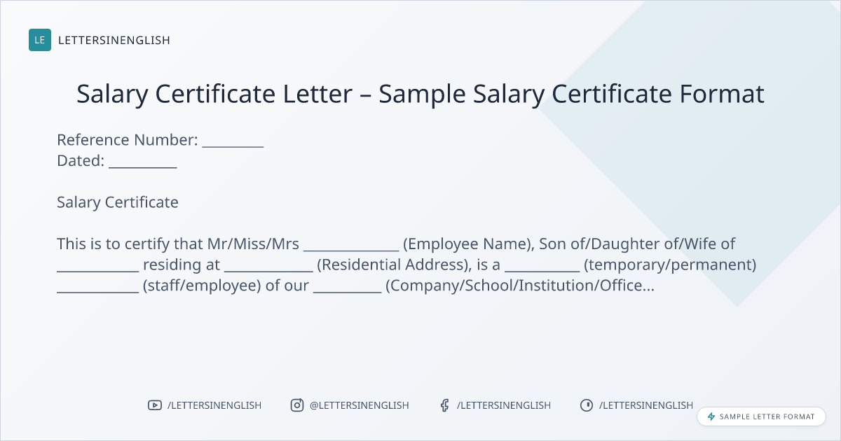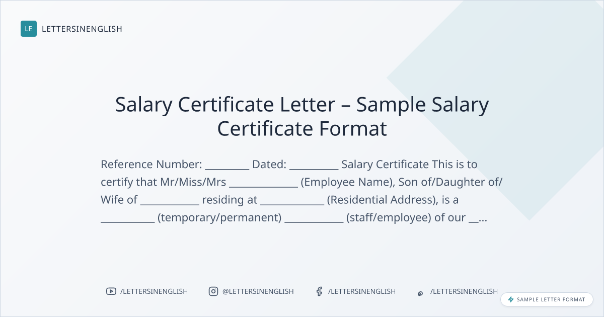 Salary Certificate Letter – Sample Salary Certificate Format