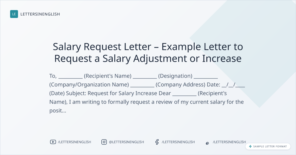 Salary Request Letter – Example Letter to Request a Salary Adjustment or Increase