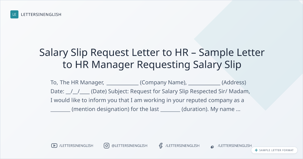 Salary Slip Request Letter to HR – Sample Letter to HR Manager Requesting Salary Slip