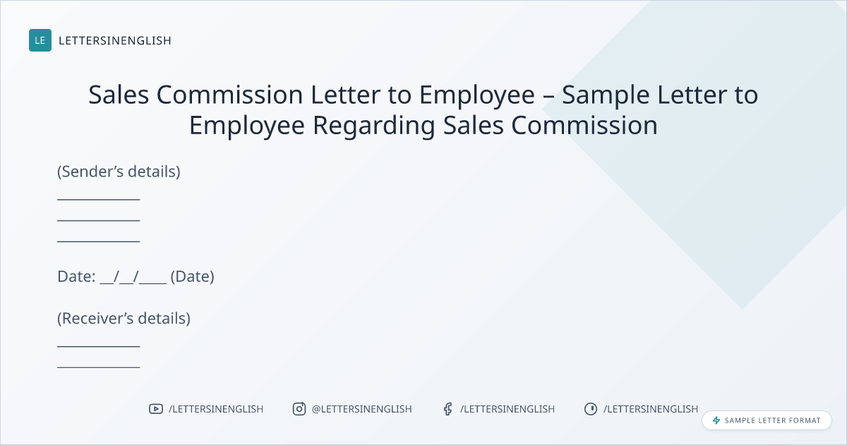 Sales Commission Letter to Employee – Sample Letter to Employee Regarding Sales Commission