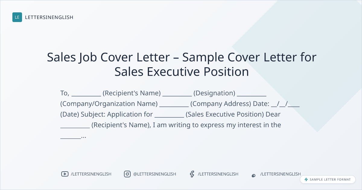 Sales Job Cover Letter – Sample Cover Letter for Sales Executive Position