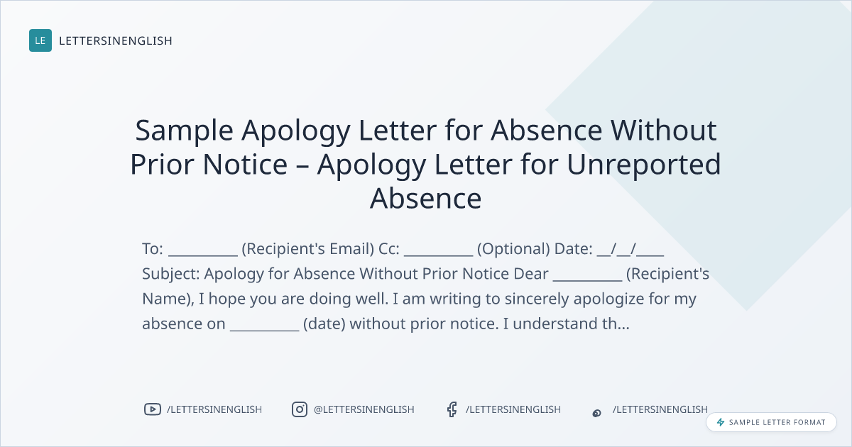 Sample Apology Letter for Absence Without Prior Notice – Apology Letter for Unreported Absence