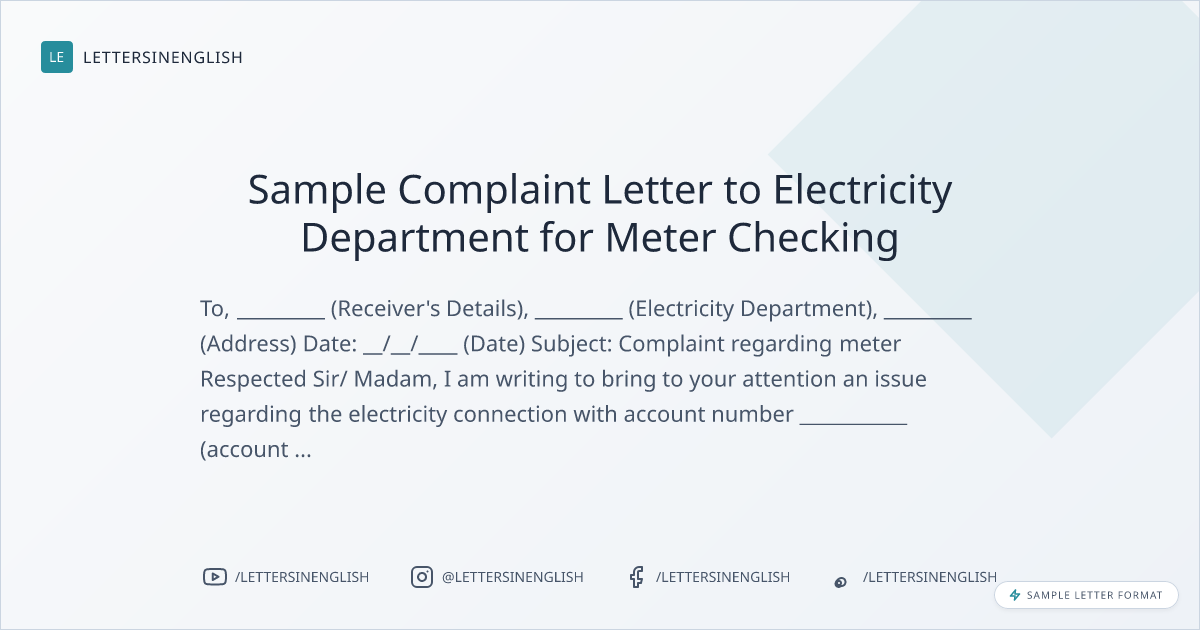 Sample Complaint Letter to Electricity Department for Meter Checking