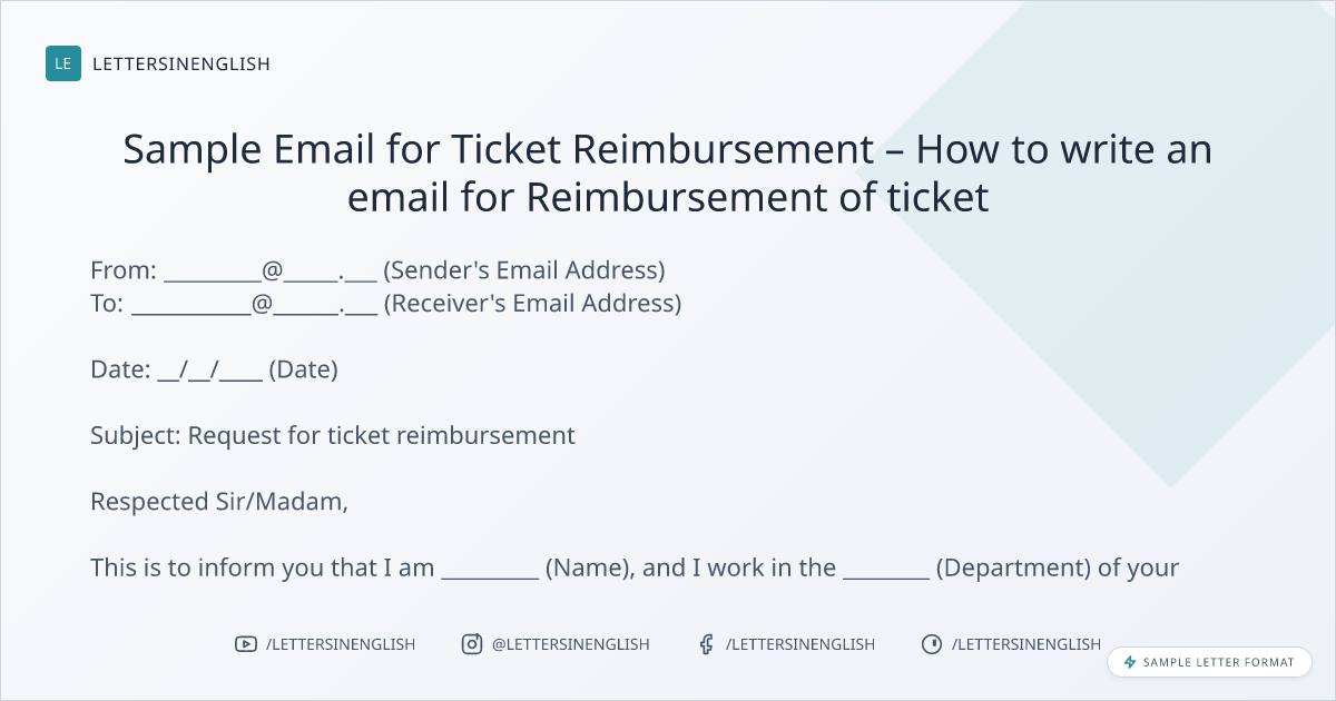 Sample Email for Ticket Reimbursement – How to write an email for Reimbursement of ticket