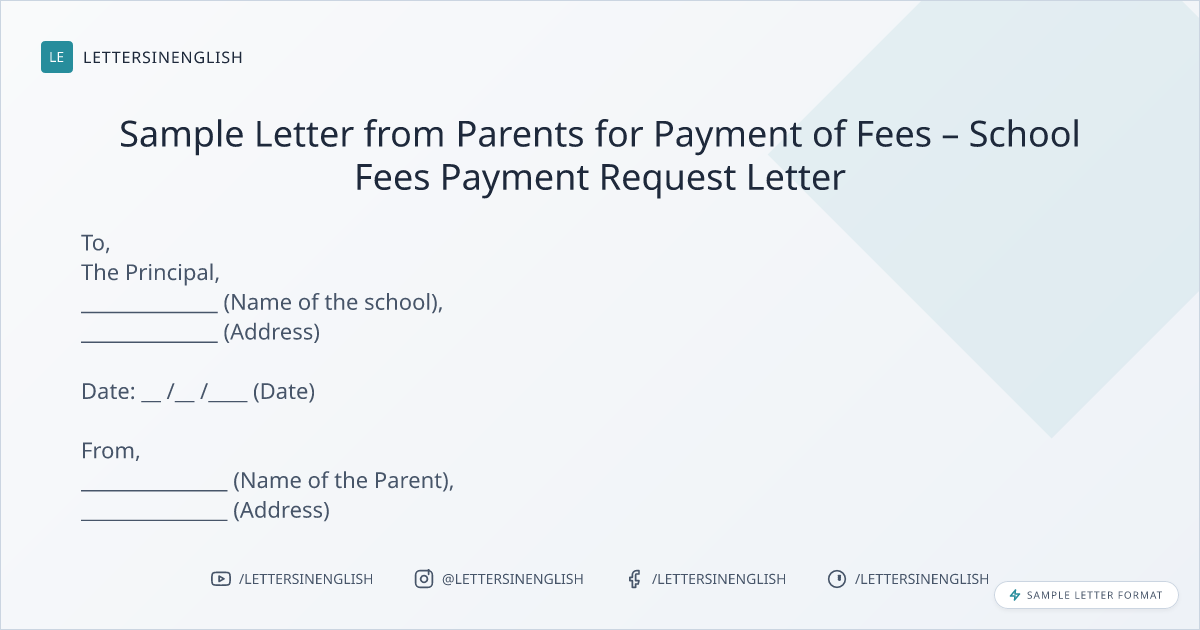 Sample Letter from Parents for Payment of Fees – School Fees Payment Request Letter