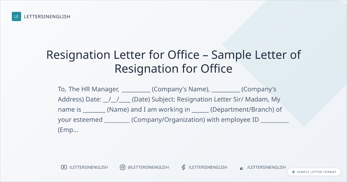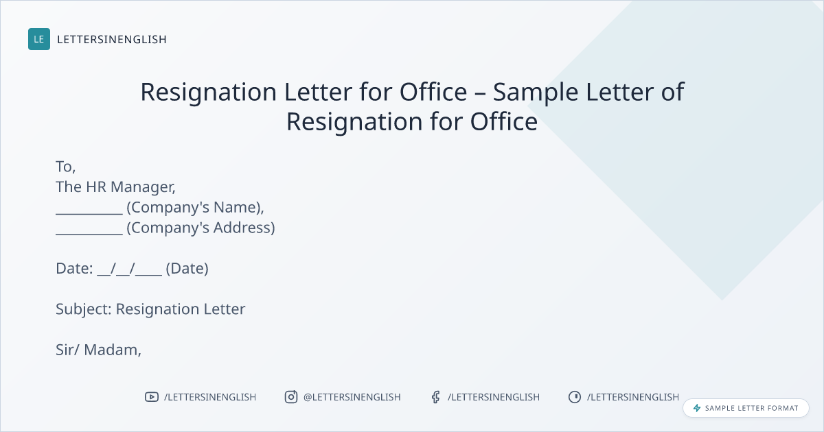 Resignation Letter for Office – Sample Letter of Resignation for Office
