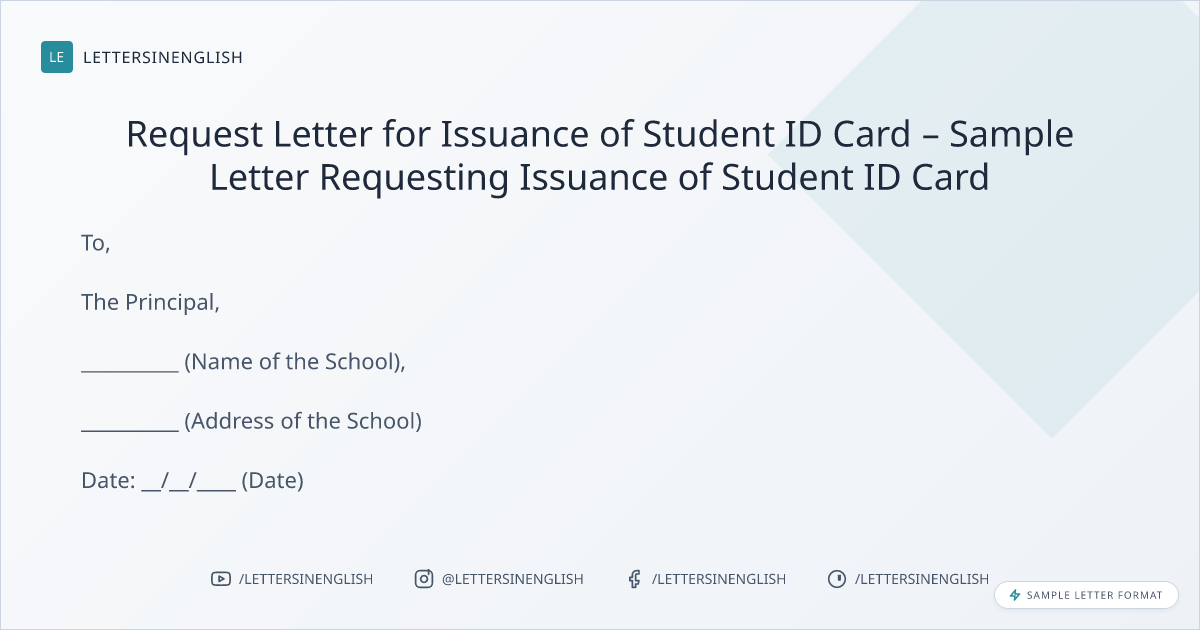 Request Letter for Issuance of Student ID Card – Sample Letter Requesting Issuance of Student ID Card