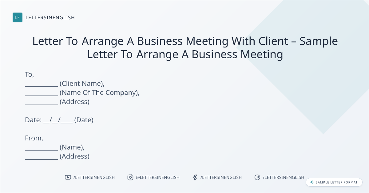 Letter To Arrange A Business Meeting With Client – Sample Letter To Arrange A Business Meeting