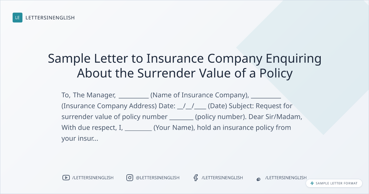 Sample Letter to Insurance Company Enquiring About the Surrender Value of a Policy
