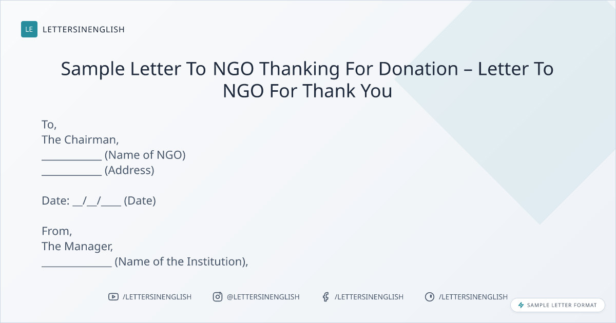 Sample Letter To NGO Thanking For Donation – Letter To NGO For Thank You
