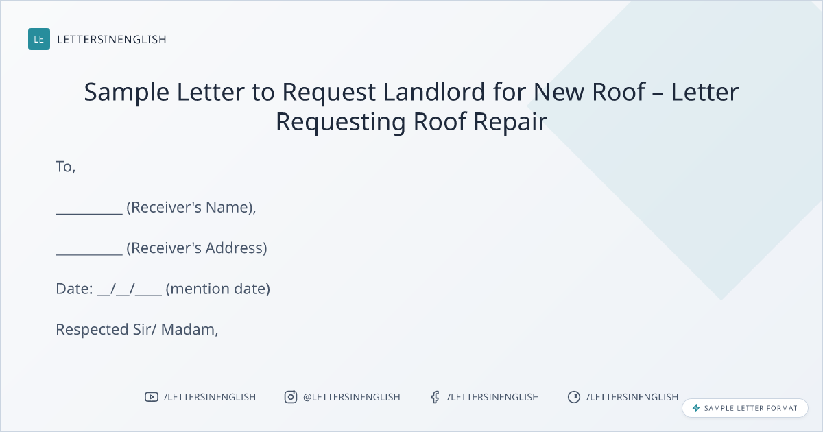 Sample Letter to Request Landlord for New Roof – Letter Requesting Roof Repair