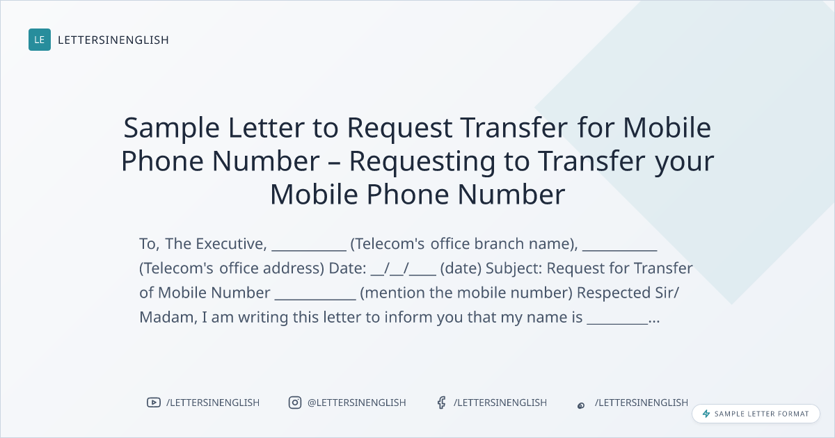 Sample Letter to Request Transfer for Mobile Phone Number – Requesting to Transfer your Mobile Phone Number