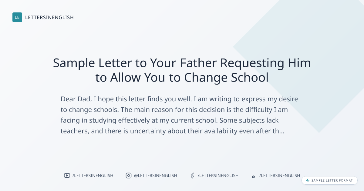 - sample letter to your father requesting him to allow you for changing school