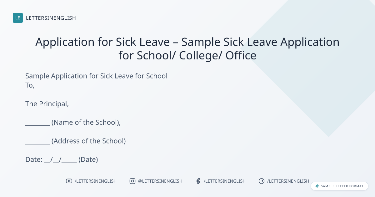 Sample Application for Sick Leave for School