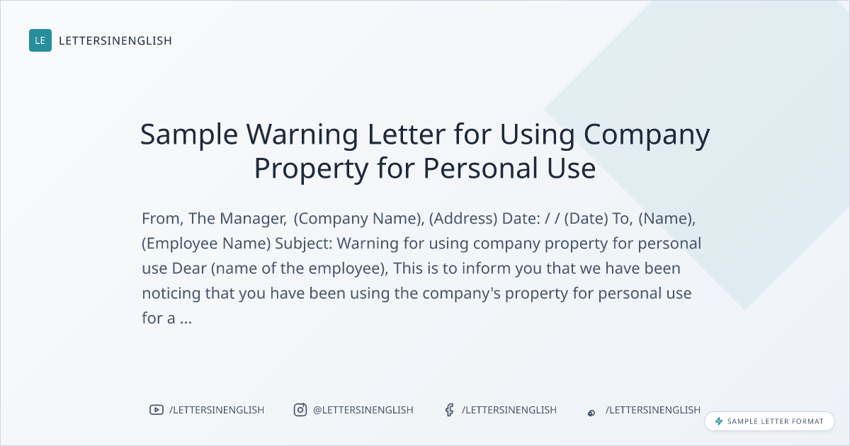 This is to inform you that we have been noticing that you have been using the company’s property for personal use for a long time. We have provided you with _______ (mention company’s property name) for official use only.