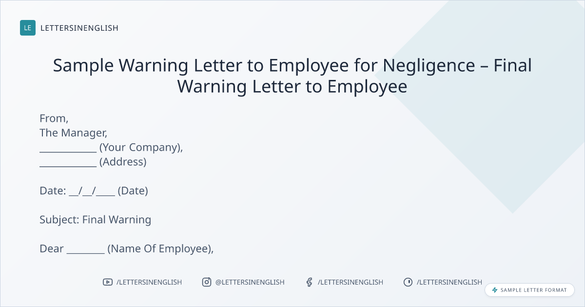 Sample Warning Letter to Employee for Negligence – Final Warning Letter to Employee