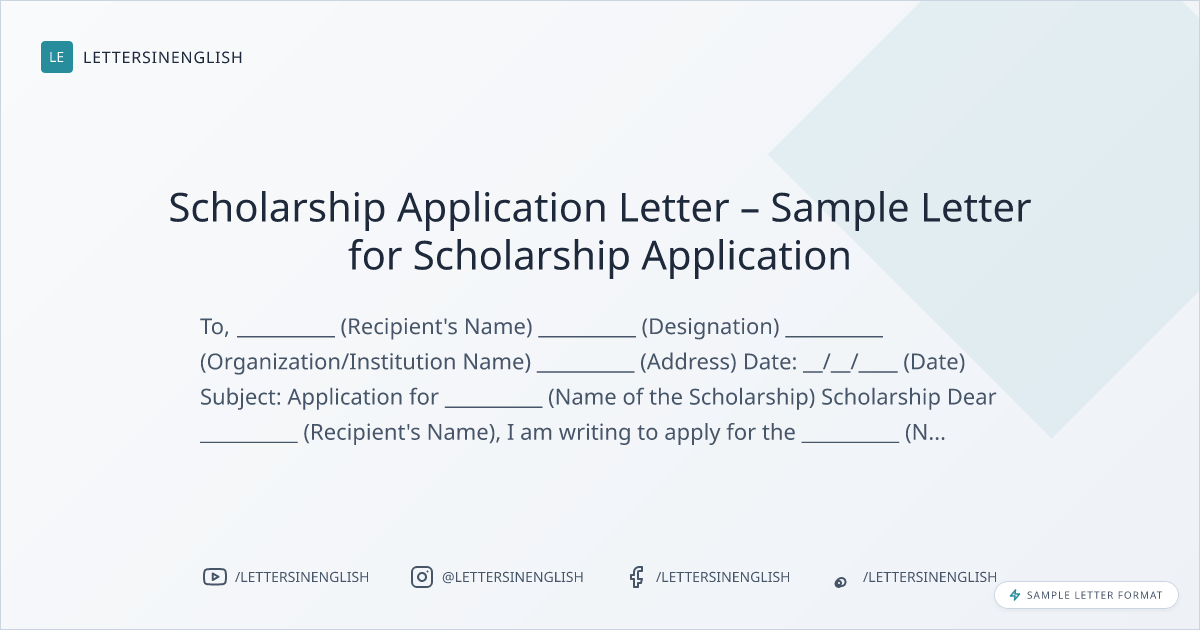 Scholarship Application Letter – Sample Letter for Scholarship Application