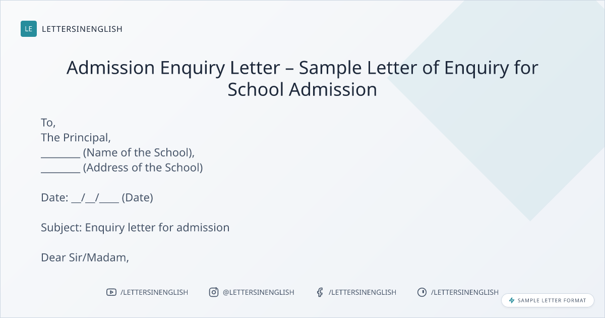 Admission Enquiry Letter – Sample Letter of Enquiry for School Admission