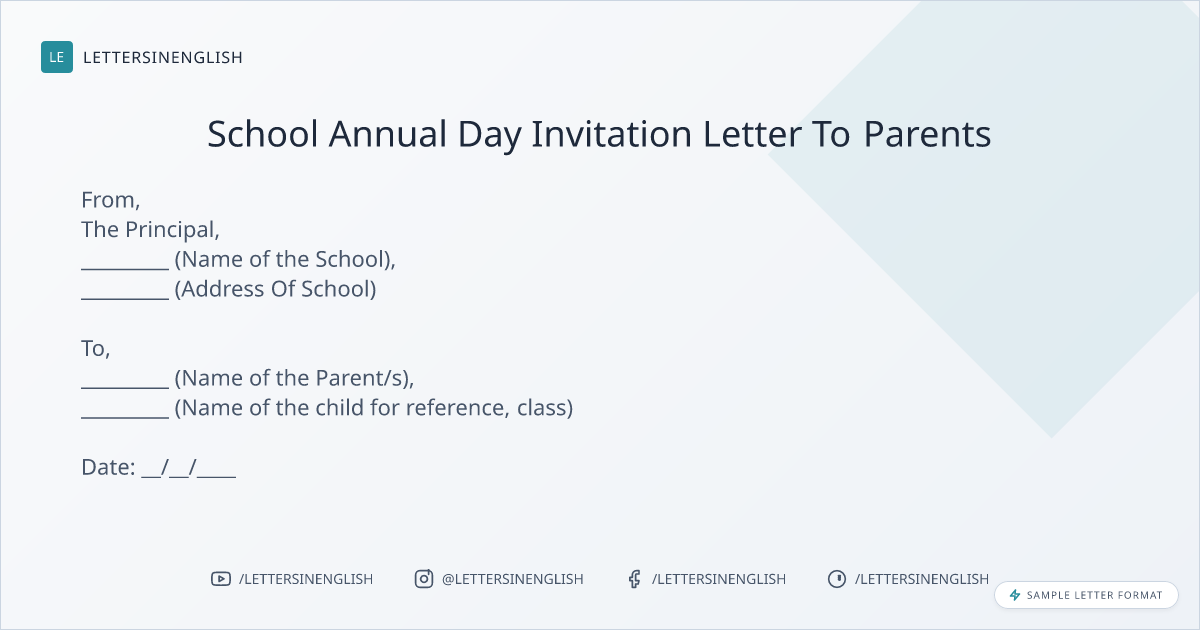 Subject: Invitation For Annual Function (name of the annual day, year)