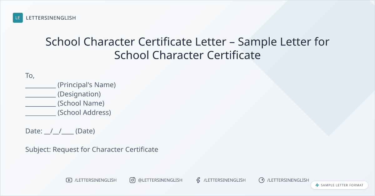 School Character Certificate Letter – Sample Letter for School Character Certificate