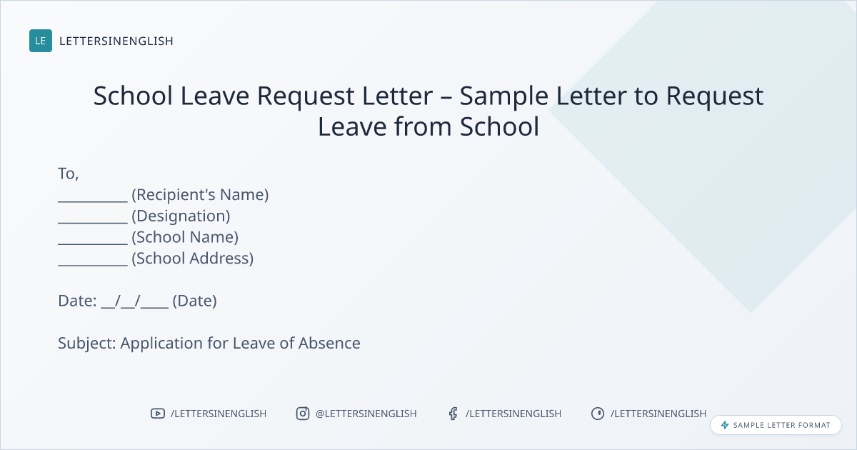School Leave Request Letter – Sample Letter to Request Leave from School