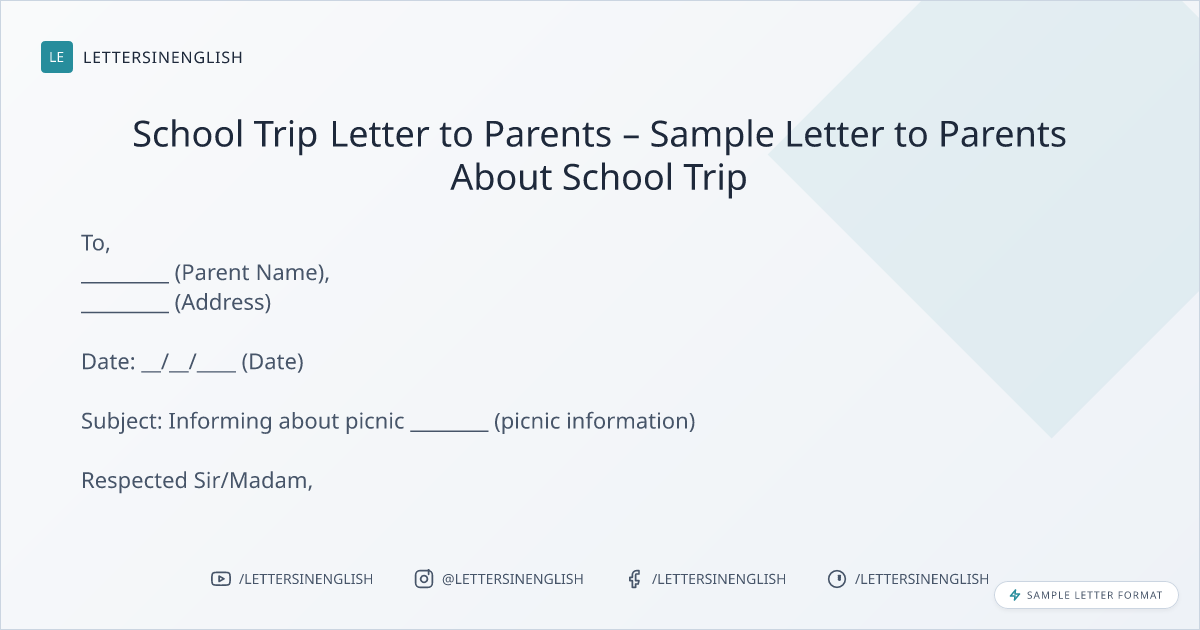 This letter is in reference to the picnic which is being conducted on __/__/____ (Date) for classes __ to __ (Class). Picnic will be held at __________ (Location).