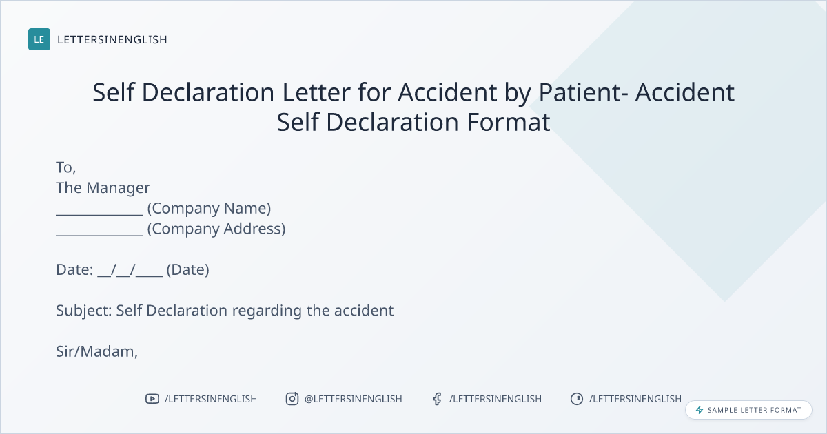Self Declaration Letter for Accident by Patient- Accident Self Declaration Format