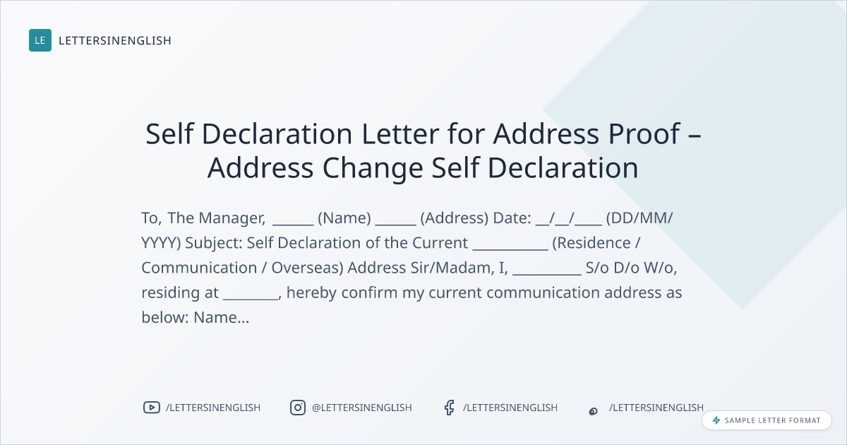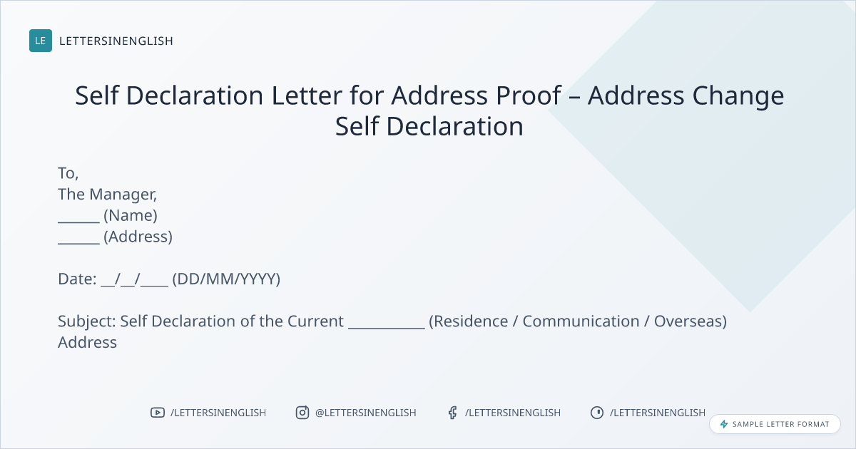 Self Declaration Letter for Address Proof – Address Change Self Declaration