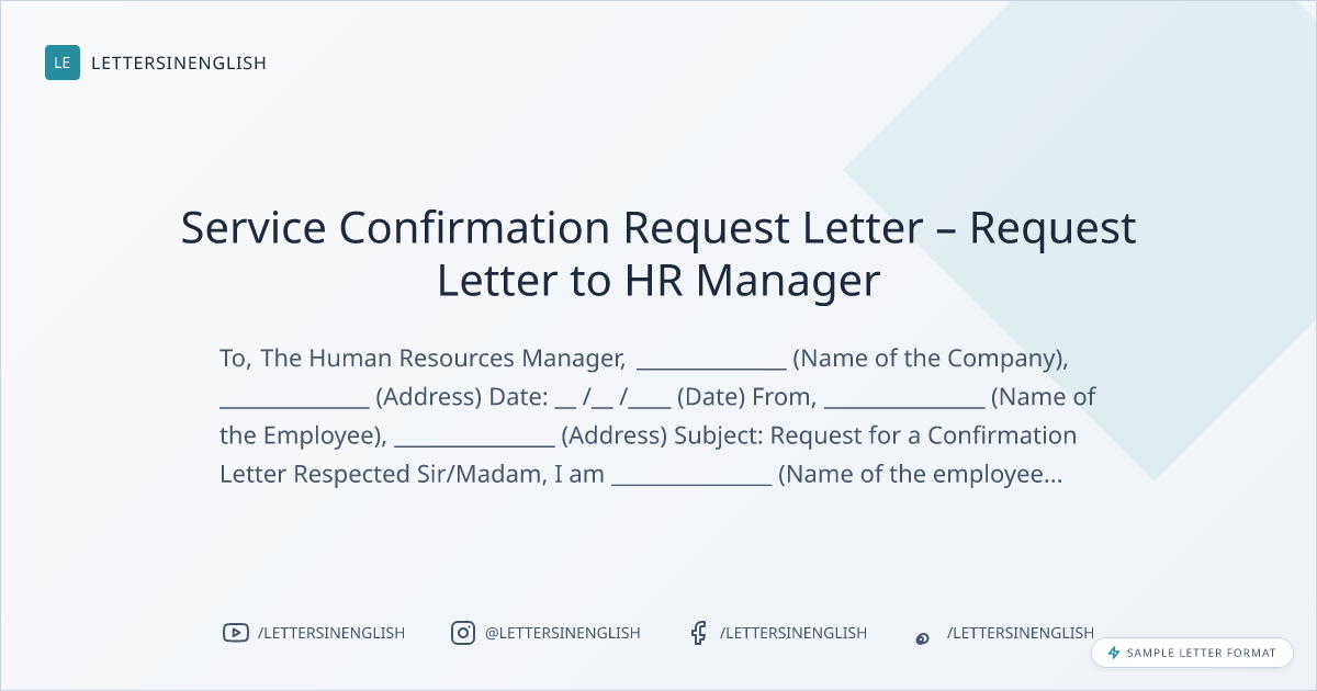Service Confirmation Request Letter – Request Letter to HR Manager
