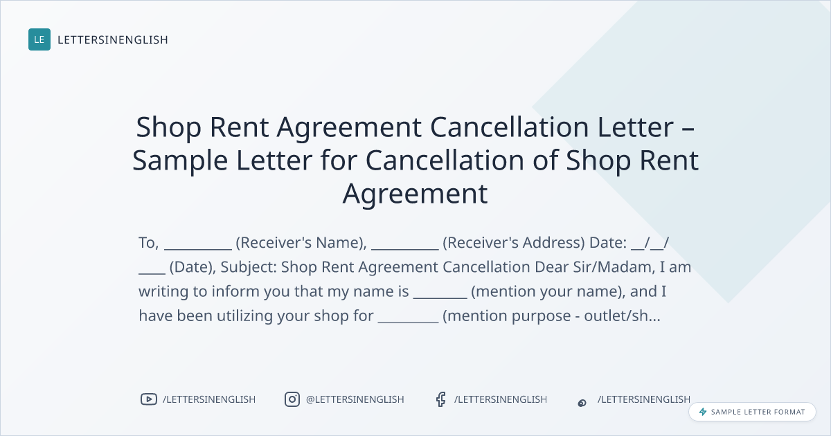 Shop Rent Agreement Cancellation Letter – Sample Letter for Cancellation of Shop Rent Agreement