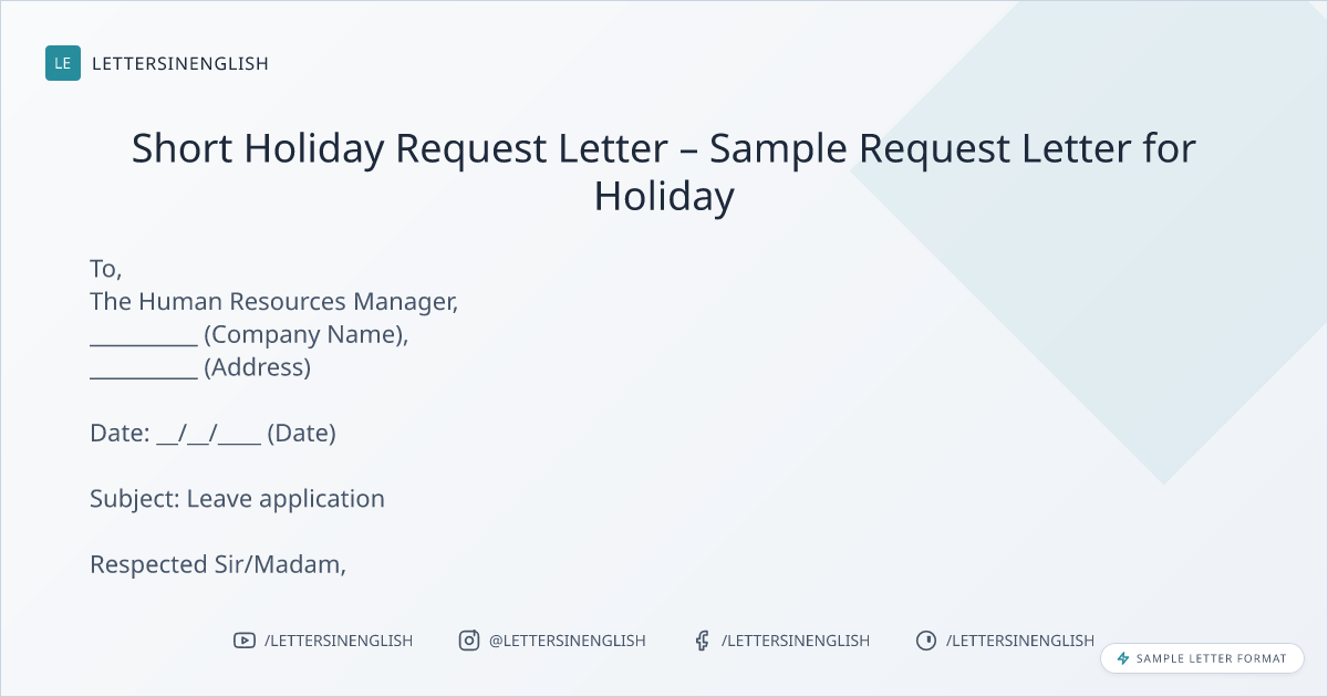 Short Holiday Request Letter – Sample Request Letter for Holiday