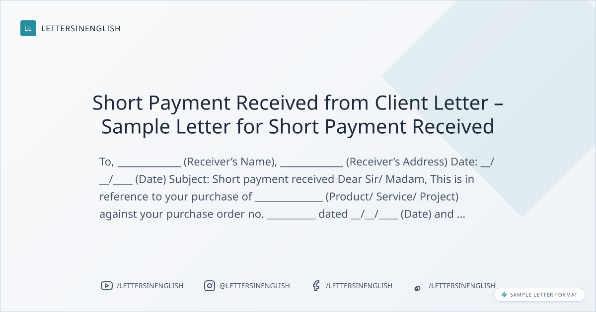 Short Payment Received from Client Letter – Sample Letter for Short Payment Received
