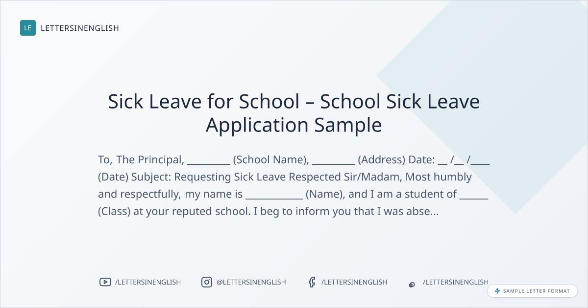 Sick Leave for School – School Sick Leave Application Sample