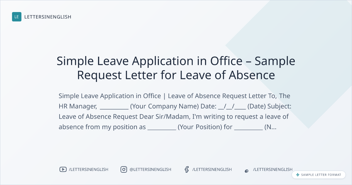 Simple Leave Application in Office – Sample Request Letter for Leave of Absence